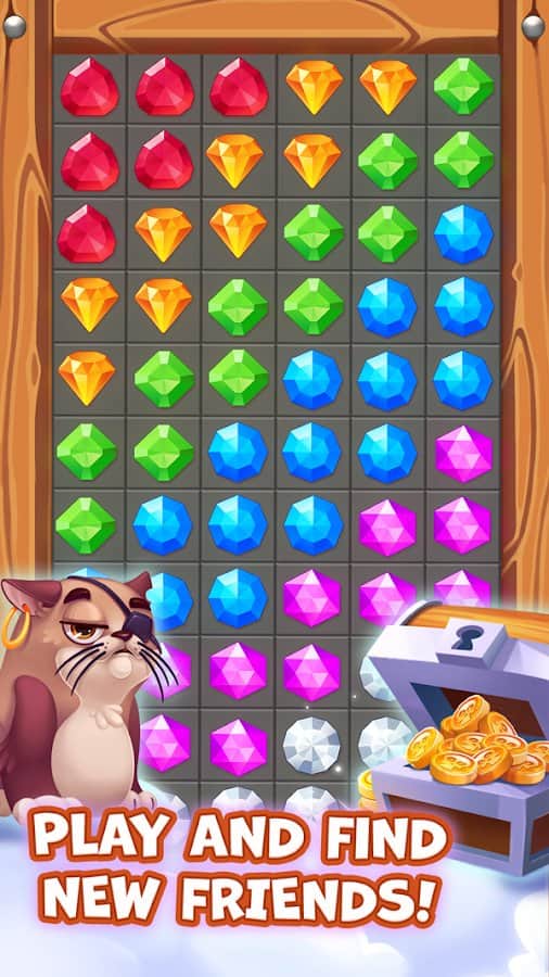 Korsan Hazineleri - Değerli Taşlar Bulmacası – Android için üçlü eşleştirme türünde eğlenceli bir oyundur, burada korsan hazinelerini aramak için yola çıkacaksınız. Bu oyunun kahramanlarıyla birlikte heyecan verici bir yolculuğa çıkın ve sayısız hazine ve değerli taşlar bulun. Eski haritaları arayın, onların talimatlarını takip edin ve oyunun her aşamasında heyecan verici seviyeleri geçin. Aynı renkten üç veya daha fazla taşı yan yana getirin ve kahramanlara çeşitli durumlarla başa çıkmalarına yardımcı olarak eğlenceli seviyeleri geçin. Arkadaşlarınızla oynayın ve zenginlik yolunda onlardan önde gitmeyin.