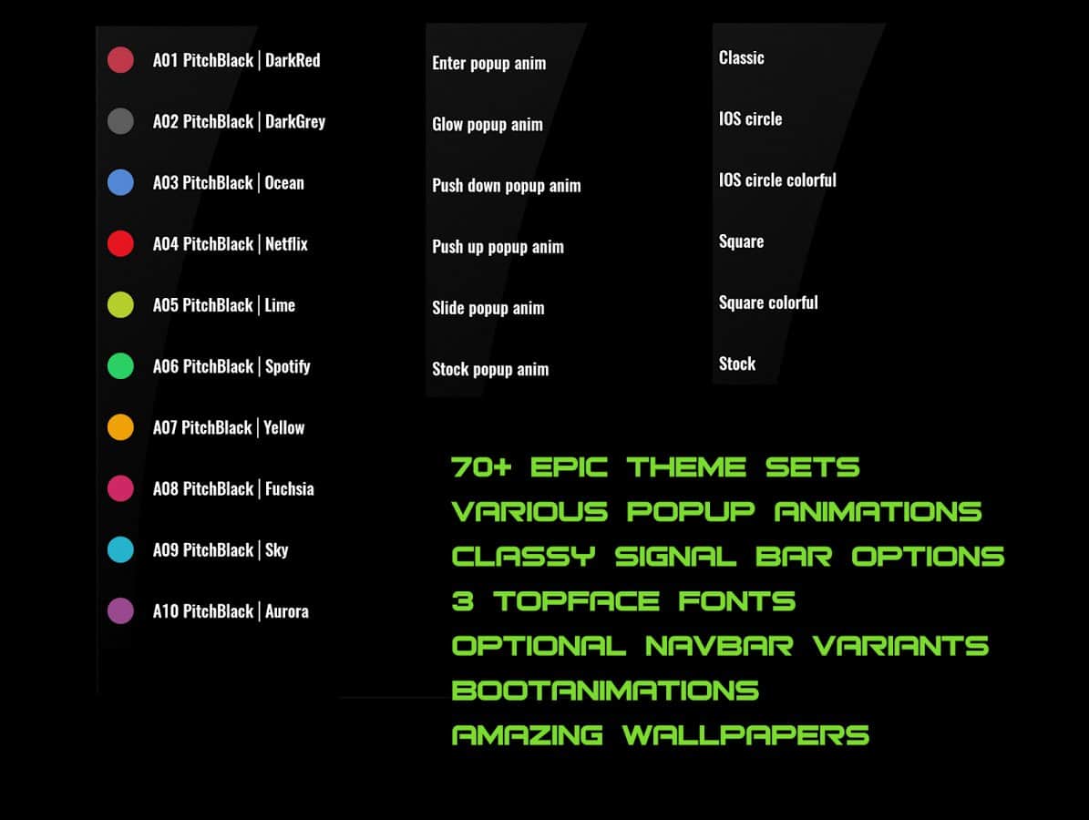 PitchBlack Origins Teması - Renkli ve güzel bir tema, en iyi unsurları bir araya getiriyor, basit renk dengesi ile başlayarak, simge setini mükemmel şekilde tamamlayan duvar kağıtları ile sona eriyor. Ayrıca bu uygulama, çoğu modern başlatıcıda desteklenmektedir, bu yüzden başlatma ile ilgili herhangi bir sorun yaşamayacaksınız.