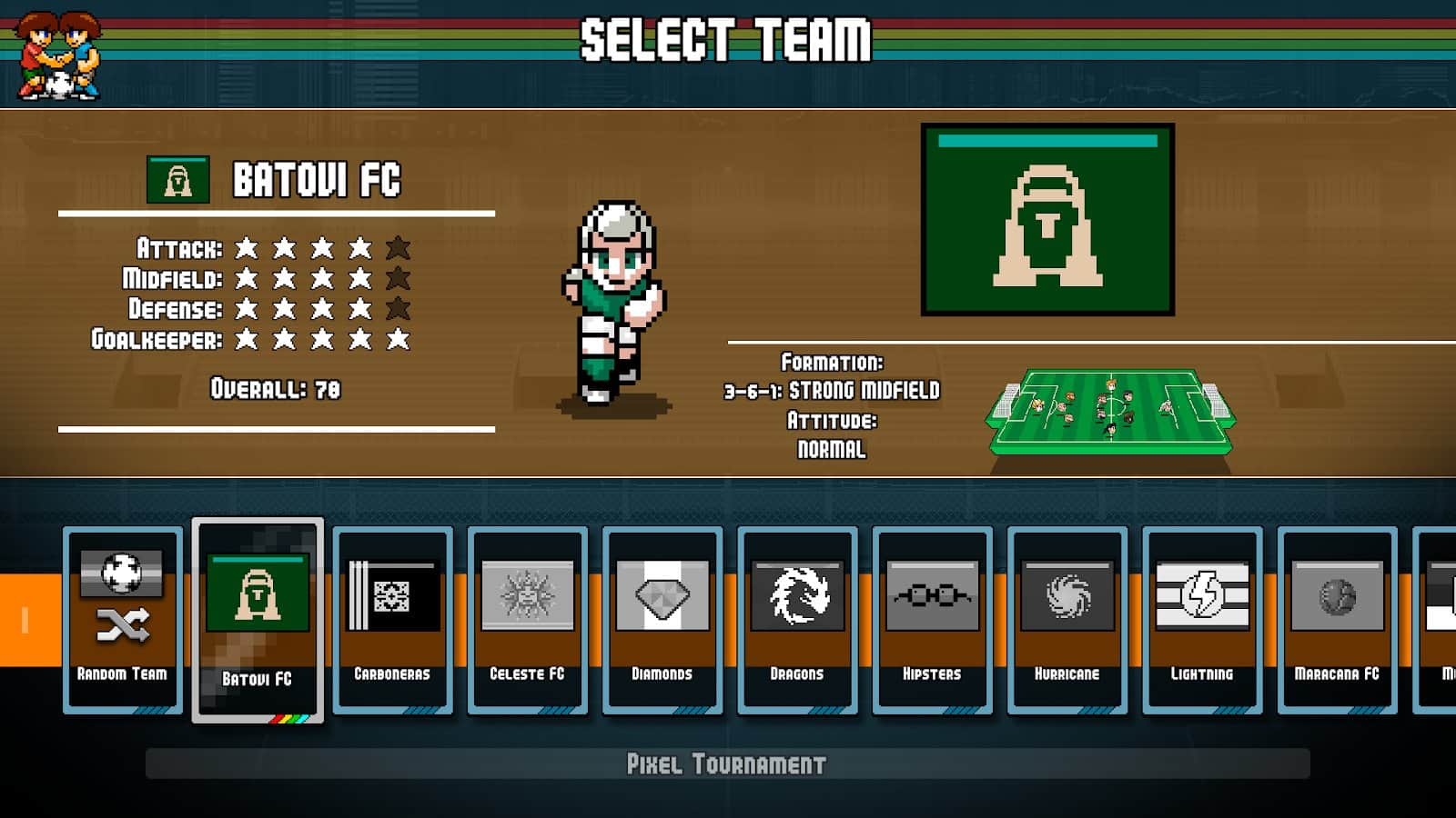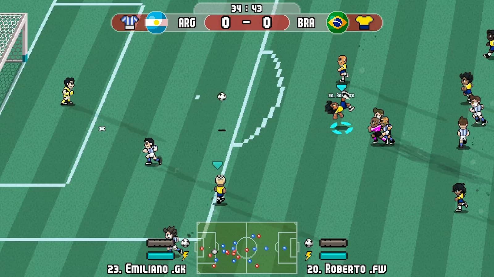 - Arcade futbol ruhunu yansıtan canlı piksel grafikleri ve müzik.