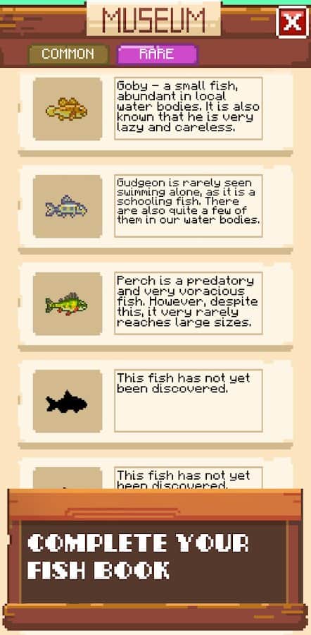 Her yakaladığınız canlıyı takip ederek balık kitabınızı doldurun. Yeteneklerinizi geliştirin ve çeşitli altın balıkları açın.