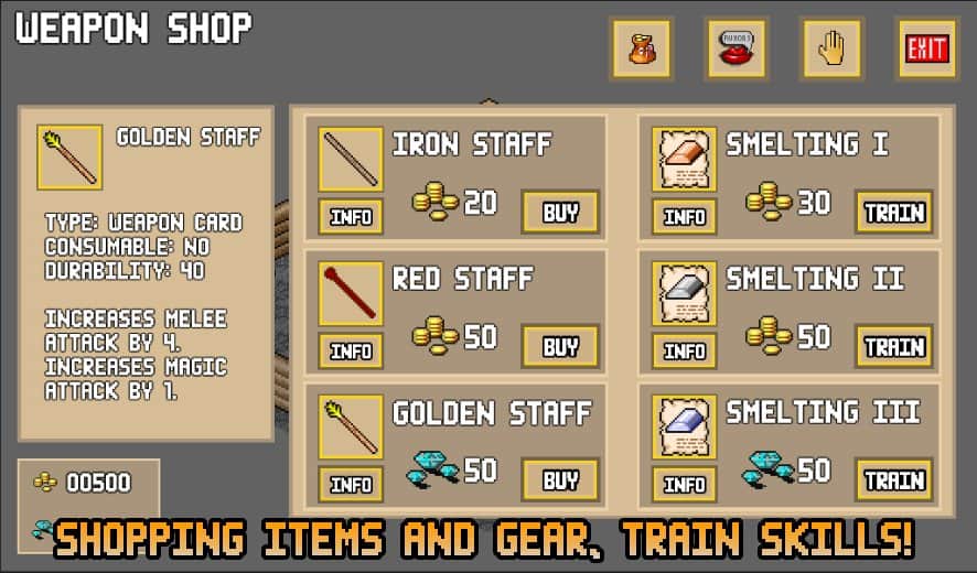 Pikselli dünyada baş kahraman olarak heyecan verici bir maceraya atılmaya hazır mısınız? Keşfedilmemiş bölgeleri araştırın, kolay ve zor düşmanlarla savaşın, ilginç görevleri tamamlayın, yararlı eşyalar toplayın, masaüstünde yeni bir şeyler yaratmaya başlayın, bulmacaları düşünün ve kolayca çözün, tezgahlarda silah veya diğer eşyaları satın alın, mini oyunlar oynayın, savaşlarda ek fırsatları kullanın ve yararlı eşyalar kazanma şansı ile şans çarkını çevirin.