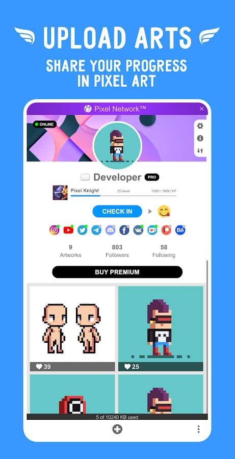 Pixel Network'e katılın ve piksel sanatçıları ve sanat tutkunlarıyla dolu canlı bir topluluğun parçası olun. Hangi programda çalışıyor olursanız olun, yaratıcı alanımıza hoş geldiniz! Yerleşik mini düzenleyicide yeteneklerinizi deneyin - bu, piksel sanatı dünyasında yolculuğunuza başlamak için mükemmel bir fırsat. Çizmek istemiyor musunuz? O zaman sadece topluluğun yetenekli üyeleri tarafından yaratılan harika piksel eserleri ve animasyonların koleksiyonunun tadını çıkarın. Uygulamada herkes kendine uygun bir şey bulacak - ister yaratıcılık, ister ilham, ister sadece harika sanat projelerini izlemekten zevk almak olsun.