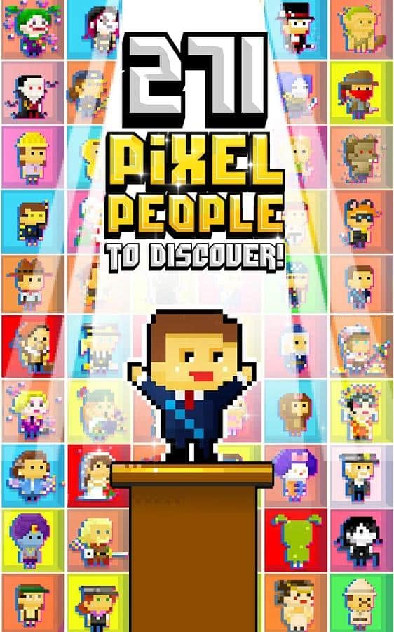 Pixel İnsanlar - hayali bir dünyaya hoş geldiniz, burada kendi şehrinizi ve sakinlerinizi yaratmanız gerekiyor. Yeni sakinler, yeni inşa ettiğiniz şehre geliyor ve görev yours, onları yeni dünyada yerleştirip, onlara evler inşa etmek. Şehrinizdeki her mutlu sakin için kalp ve ödüller kazanacaksınız, bu ödülleri şehriniz için yeni sakinler ararken harcayabilirsiniz.