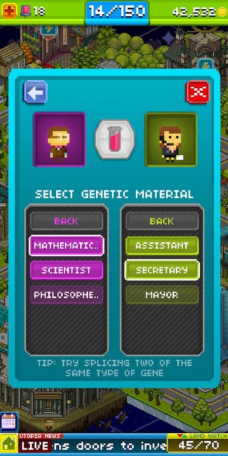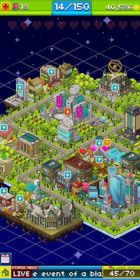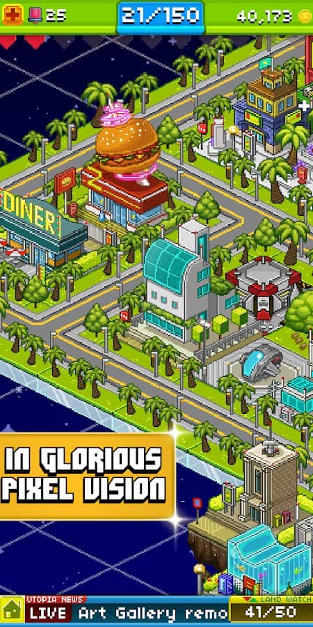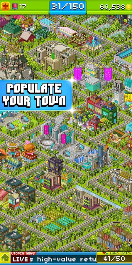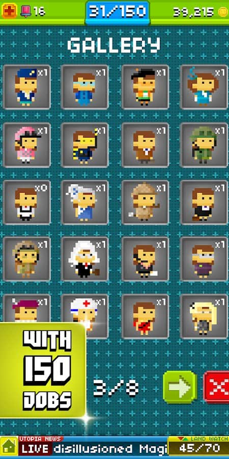 Pikselli İnsanlar – Android için harika bir strateji oyunu, burada Ütopya dünyasında yer alacaksınız. Bu pikselli oyunda göreviniz bir şehir ve onun sakinlerini yaratmaktır. Şehir sakinlerinin genlerini ve becerilerini birleştirerek yeni pikselli insanlar oluşturun. Şehrinizi güzelleştirin ve onun refahı için elinizden geleni yapın. Her biri benzersiz bir dış görünüşe ve becerilere sahip 300'den fazla yeni şehir sakini yaratın. İnsanlar için iş yerleri oluşturun ve böylece daha fazla para kazanın. Geçtiğiniz seviyeler için bonuslar ve güçlendirmeler alın ve eşsiz dünyanızı yaratın.