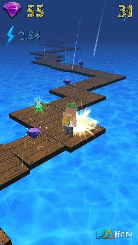 Pikselli yol 3D - pikselli adamı kontrol ediyoruz ve beton plakalar üzerinde mümkün olduğunca uzun kalmaya çalışıyoruz. Kahramanınız durmadan koşuyor, sadece hareketini ekranı tıklayarak düzeltebilirsiniz. Koşarken mümkün olduğunca çok değerli elmas toplamaya çalışın. Söylemesi kolay görünüyor, ama gerçekte bloklarda kalmak için tüm çevikliğinizi ve dikkatinizi göstermeniz gerekiyor. Oyunda birkaç seviye var - bu, bloklar üzerindeki koşunuzu çeşitlendiriyor.