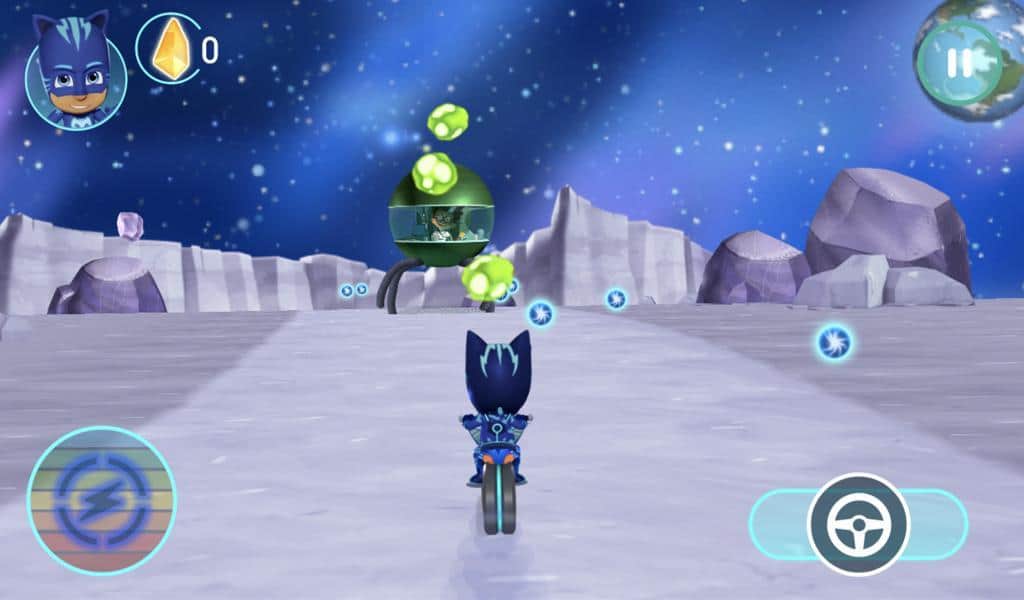 PJ Masks: Yarışçı Kahramanlar – Android'de Ay'da yarışacağınız bir yarış oyunu. Kedi Çocuk, Alet ve Gekko gibi sunulan karakterlerden bir yarışçı seçin. Gece kötüleri Ay Kızı ve Romeo, güçlerini artıracak tüm ay kristallerini almak istiyor. Onları durdurmalısınız, bir yolculuğa çıkın ve Ay'da yarışarak rover'ı yönetin. Her adımda sizi bekleyen sayısız engel ve tehlikeden sakının ve mümkün olduğunca çok kristal toplayın.