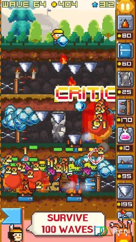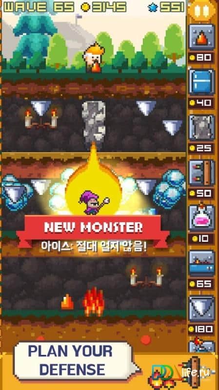 Platform Defense: Wave 1000 F – köyünü canavarlardan korumaya karar veren cesur bir kahramanı yönetin. Köyünüze korkunç canavarlar saldırdı, bunların amacı köyün tüm sakinlerini yer altına kaçırmak. Yerel halkın sorumluluğunu üstlenin ve canavarlara karşı koyun. Canavarların gizlendiği çok katmanlı zindanları keşfedin ve onları keskin oklar, bombalar, duvarlar ve diğer tuzaklarla yok edin. Canavarların yukarı çıkmasına ve size ile yerel halkınıza zarar vermesine izin vermeyin. Oyun piksel tarzında yapılmış olup size benzersiz karakterlerle keyif verecek.