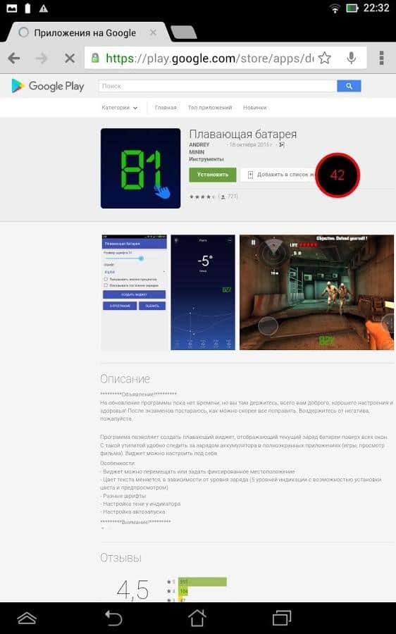 Elbette, pil şarj seviyesinin bildirim çubuğunda görüntülenmesine alıştık, ancak bir şeyleri değiştirmek isterseniz veya örneğin oyun oynarken ya da sevdiğiniz bir filmi izlerken şarj seviyesini görmek istiyorsanız? Bu sorunu bu yardımcı program çözüyor.