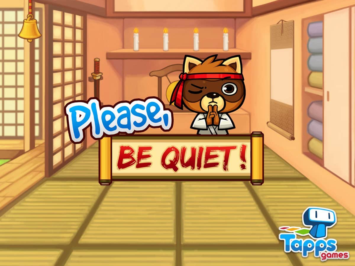 Lütfen Sessiz Olun! Sanal Evcil Hayvan - android için bir oyun, burada ninja rakuna meditasyon yaparken müdahale edeceksiniz. O sakin kalmayı sever, siz ise onu rahatsız ederek alışılmadık tepkilerini görmek için elinizden geleni yapmalısınız. Ayrıca paraları toplayın ve yeni ve eğlenceli tepkileri açın.