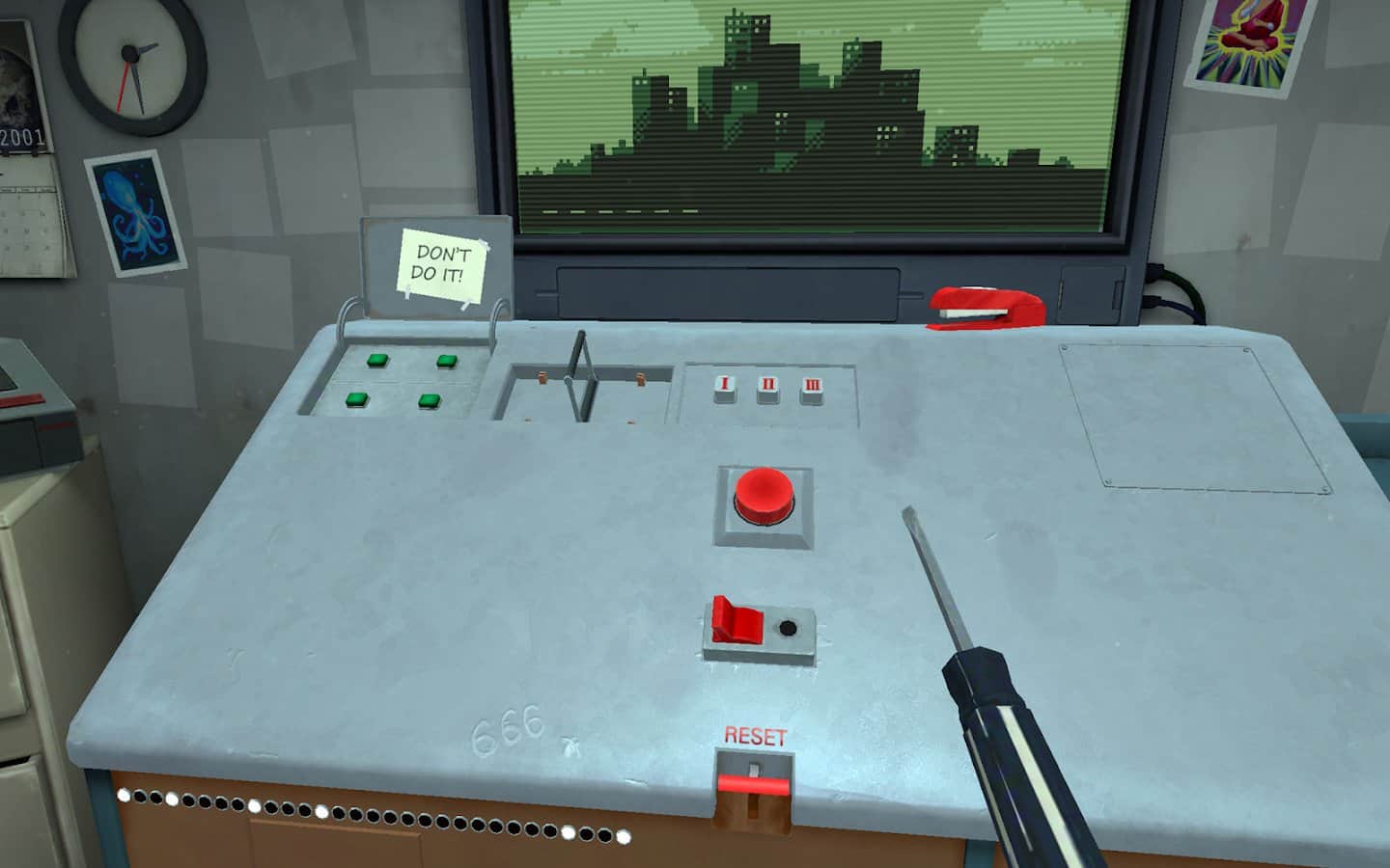 Lütfen Hiçbir Şeye Dokunmayın - arkadaşınızın sizi iş yerine getirmesiyle başlayan bir bulmaca oyunu. Görünüşe göre yapması gereken tek şey monitörü izlemek, oysa ki o gerçek bir mühendis. Bir gün arkadaşınızın canı sıkılıyor ve bir süreliğine ayrılıyor, size hiçbir şeye dokunmamanızı şiddetle tavsiye ediyor, ama buna nasıl dayanabilirsiniz ki.