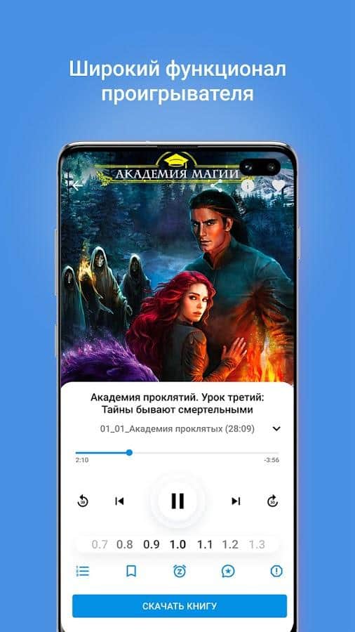 Sesli kitaplar için oynatıcı - eğer kitap okumayı sevmiyorsanız veya ne hakkında konuşulduğunu anlamakta zorlanıyorsanız, ama bu bilgiyi dinlemek sizin için daha kolaysa, bu uygulamayı düzenli olarak kullanarak, kitap dinlemenin ekran metnine odaklanmaktan ne kadar daha kolay olduğunu anlayacaksınız. Kendinize çeşitli kategorilerden en iyi kitapları seçin, önceden detaylı bilgileri inceleyin ve ardından ses kaydını dinlemeyi deneyin. İçinde hızlı veya yavaş ileri sarma, zaman çubuğu, duraklatma ve kitabı indirme olanağı gibi geniş bir işlevsellik bulacaksınız.