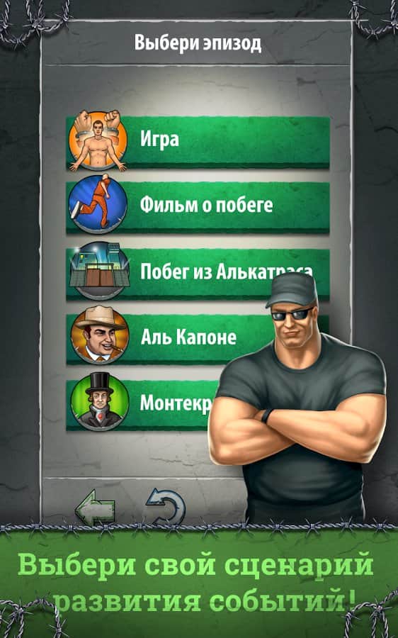 Hapisten Kaçış - Android için bir bulmaca oyunu, burada hapisten kaçış planınızı geliştireceksiniz. Yanlış bir adım atarsanız, yargıcın kararıyla dünyanın en korunaklı hapishanesi Alcatraz'a girmiş olursunuz. Kaçış planınızı oluşturmak ve bu hapishaneden sonsuza dek ayrılmak için cesur bir adım atmaya karar veriyorsunuz. Kaçış için gerekli mekanizmaları oluşturmak üzere çeşitli nesnelere ve unsurlara ihtiyacınız olacak. Kaçış için hazırlığınızı dikkatlice yapın, çünkü bunu gerçekleştirmek için yalnızca bir şansınız olacak. Oyunun başında kaçış senaryosunu seçebilirsiniz, bu Al Capone, Monte Cristo veya Alcatraz'dan kaçış olabilir.