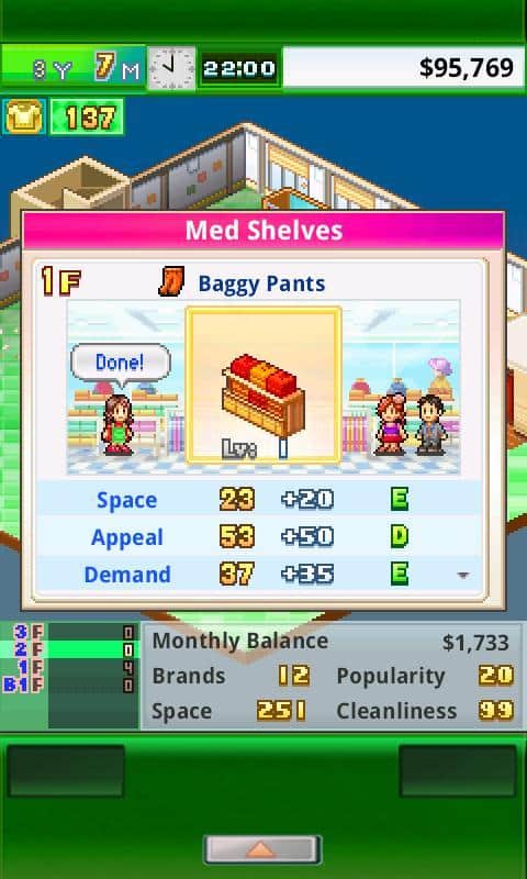 Cebinizdeki Giyimci - Kairosoft stüdyosundan ekonomik strateji serisinin devamı. Bu sefer bir giyim mağazasını yönetme görevini üstleneceksiniz. Serinin tüm projelerinde olduğu gibi, geliştiriciler detaylı bir ekonomik model ve davranış modeli sunmuşlar. Sizden beklenen, butiğinizin sadece başarılı bir şekilde var olması değil, aynı zamanda gelişmesidir; bunun için maksimum sayıda ziyaretçi çekmek önemlidir. Bu amaçlar için birçok fırsat seti mevcuttur; en prestijli modacılardan giysi örnekleri sipariş edin, mağazayı düzenleyin ve dekore edin, alanları genişletin, kampanyalar ve indirim sezonları düzenleyin, kendiniz kıyafet tasarlayın, benzersiz yeteneklere sahip personel işe alın. Bunun yanı sıra, geliştiriciler oyunculara kendi yöntemlerini icat etme fırsatı da vermiştir.