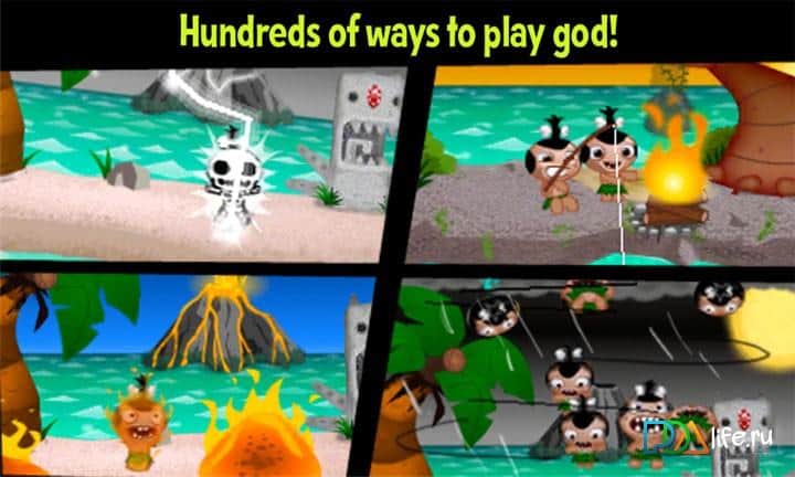 Cebimdeki Tanrı - bu eğlenceli küçük insanlarla, ruhunuzun istediği her şeyi yapabilirsiniz: boğmak, bir köpeğin ağzına atmak, volkanın içine fırlatmak, üç 'ceset' sonrası patlayıp kalanları yok eden volkan. Gökyüzünde bir fırtına çıkarın ve yerlileri yıldırımlarla vurun. Ya da eğer bu kadar kanlı bir istek içinde değilseniz - onlara güneşin batışını gösterin, buna sevinirler ve ekranı alkışladıklarında dans ederler, meyve ile besleyin... Kısacası - istediğinizi yapın.