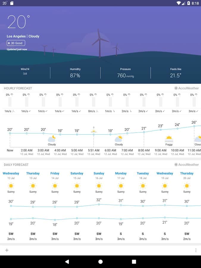 Hava M8 - Akıllı telefonunuzda kaliteli ve güzel bir hava durumu tahmini. Bu uygulama dış görünümü ve dinamik widget'ı ile benzersizdir. Çok basit, ancak her zaman kullanabilir ve herhangi bir bölgede hava durumu tahminini öğrenebilirsiniz. Ana tahmin kısa olacaktır, ancak isterseniz daha ayrıntılı bir tahmini açabilir ve sadece sıcaklığı değil, rüzgar hızını ve daha fazlasını öğrenebilirsiniz.