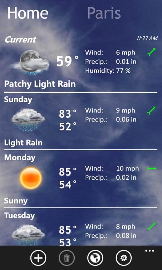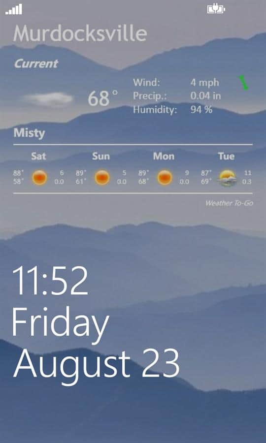 Hava To-Go - Windows Phone için bir uygulama, bu sayede dışarıda hava nasıl olduğunu öğrenebileceksiniz. Uygulama mevcut konumunuzdaki havayı ve istediğiniz 10 şehirdeki havayı gösterecektir. Ayrıca saatlik hava durumu, basınç, rüzgar hızı, yağmur, ay evreleri, güneşin doğuşu ve batışı gibi fonksiyonlar da mevcuttur. Görseli arka plan resmi olarak kullanabilirsiniz.