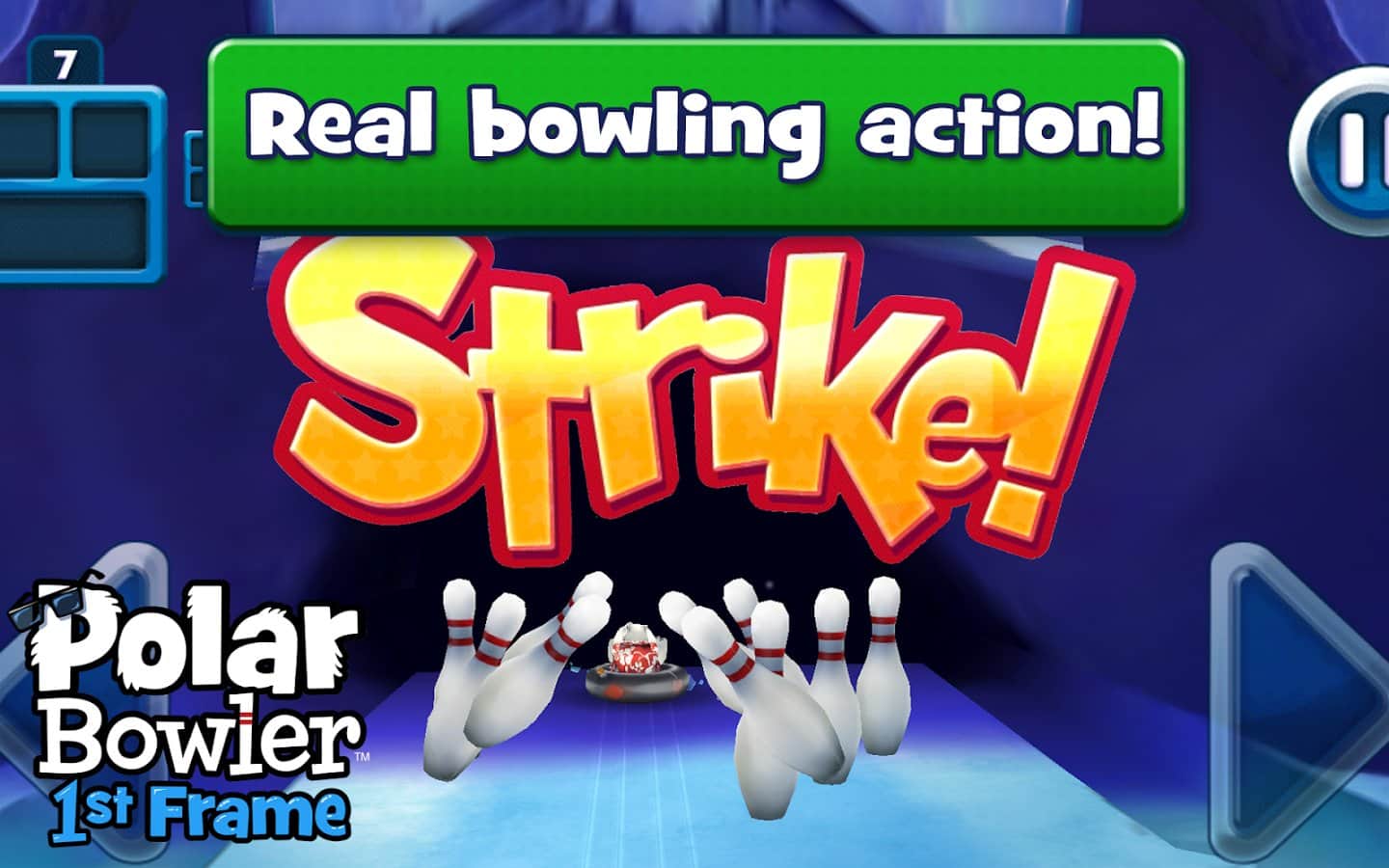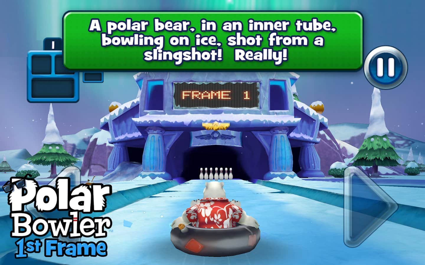 Kutup Bowler 1. Frame - Bu Android oyununda, eğlenceli Arktik ülkesine gitmek ve sıradışı bir bowling oynamak gerekiyor. Ama bu sefer pinleri devirmeyen bir top, siz şişme bir halkada ayı olarak yer alıyorsunuz.