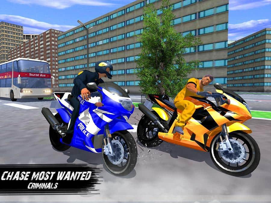 Polis, Police Bike – Gangster Chase'de motosiklete geçip tehlikeli kovalamacalar yapma fırsatını yakalıyor. Tüm bunlar, Alcatraz'dan kaçanların motosikletlere binip adaletten kaçmaya çalışmaları yüzünden. Tehlikeli suçluların kaçmasına izin verilemez, mutlaka peşlerine düşülmeli ve tutuklanmalıdır, belki de vurulmalıdır. Şehrin suç seviyesi tamamen senin eylemlerine bağlı, polislik görevini kaliteli bir şekilde yerine getir ve motosiklet sürme becerini yüksek hızlarda göster.