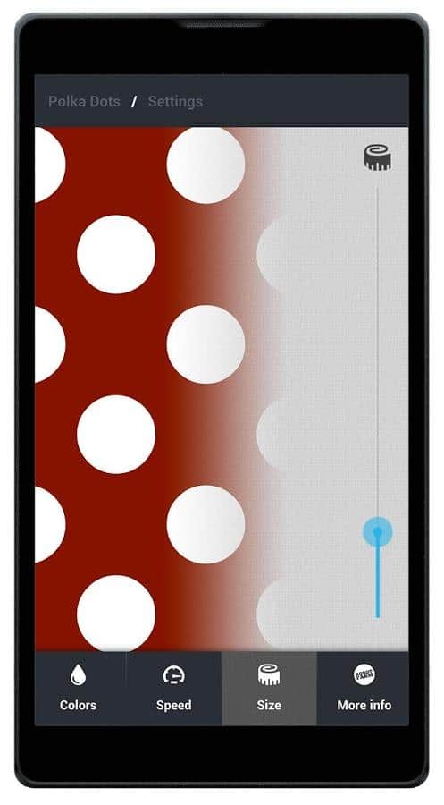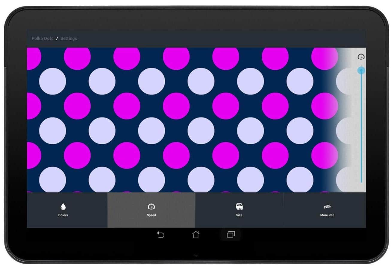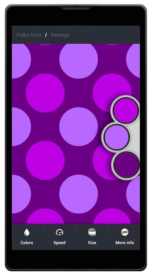 Puantiye Canlı Duvar Kağıdı LWP – RobotFarm tarafından geliştirilen Android cihazlar için hafif ve rahatsız etmeyen canlı duvar kağıtları, ayarlardaki belirlenen parametrelere bağlı olarak yavaşça değişecek modaya uygun puantiye deseni ile sizi memnun edecek.