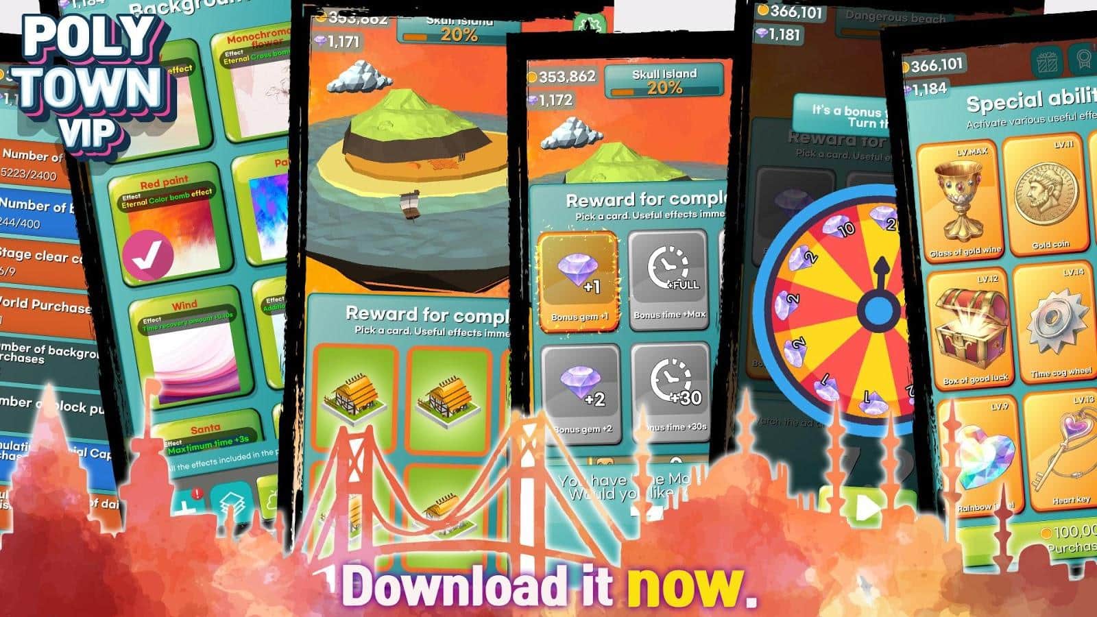 Poly Town – Android için bir bulmaca oyunu, burada bir şehir inşa edeceksiniz. Bu üçlü eşleştirme türündeki oyunda, amacınız aynı blokları sıralamak ve şehir inşası için yeni malzemeler kazanmaktır. Zihinsel becerilerinizi ve hızlı tepkinizi geliştirin ve blokları birleştirin. Yardımınıza ve inşaata ihtiyaç duyan birçok farklı şehri keşfedin. En iyi ve benzersiz şehri inşa edin ve bunu arkadaşlarınızla paylaşın. En iyi sonuçlar için ödül olarak yeni bloklar ve güzel arka planlar kazanın. Bu oyunu herhangi bir boş zamanınızda oynayın ve blokların ve arka planların sayısız etkisinin tadını çıkarın.