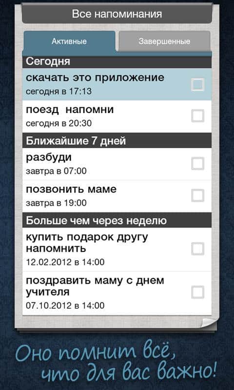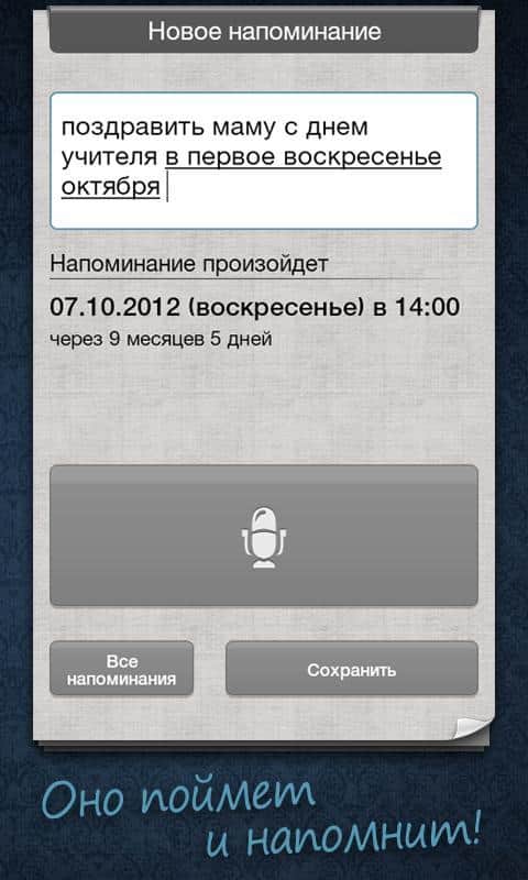 Her Şeyi Hatırla - Hatırlatma için harika bir uygulama. Tek yapmanız gereken, zamanı, tarihi ve neyi hatırlatacağınızı söylemek. Apple'ın herkesçe bilinen Siri'sinin ilginç bir alternatifi, Android cihazınızda sizlerle olacak! Sadece ona sesli olarak neyi ve ne zaman hatırlatmanız gerektiğini söyleyin, örneğin: