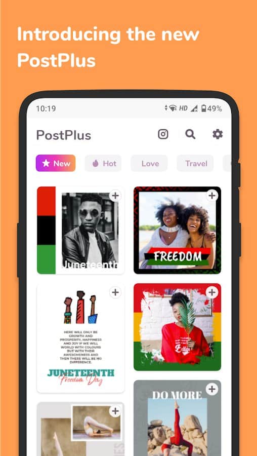 Instagram için Post Oluşturucu - PostPlus profilinizi yaratıcı bir şekilde süslemenizi, gönderilere özgün bir görünüm ve tasarım kazandırmanızı sağlayan çeşitli şablonlar kullanmanıza olanak tanır.