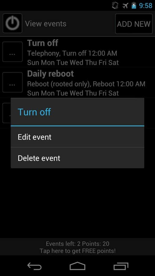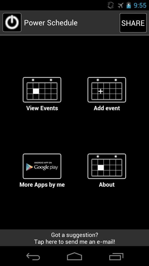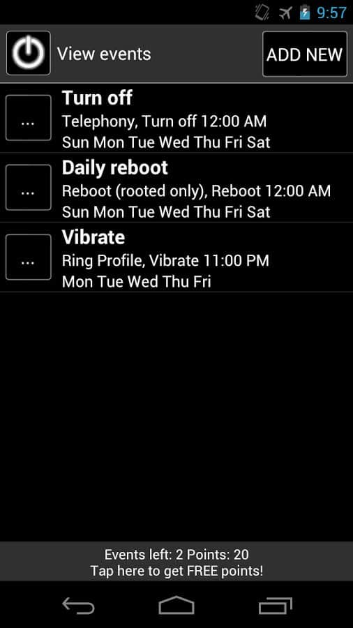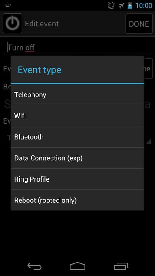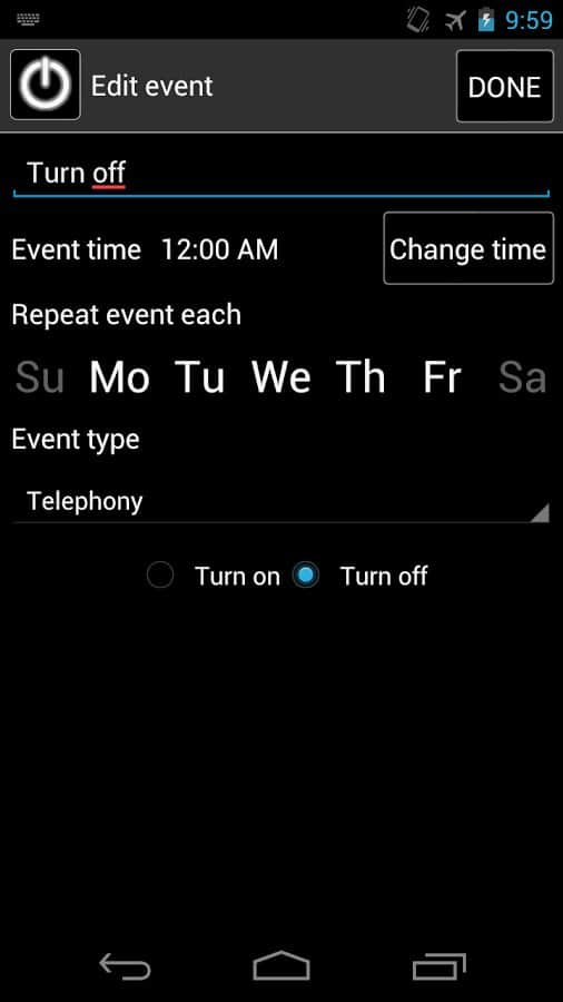 Güç Programı – harika, en önemlisi çok faydalı bir Android uygulaması, Monocube geliştiricisinden, programlı olarak işlevleri kapatıp açmak için: Wi-Fi, Bluetooth, veri aktarımını gerçekleştirmek (3G ve EDGE) ve ses profilini değiştirmek.