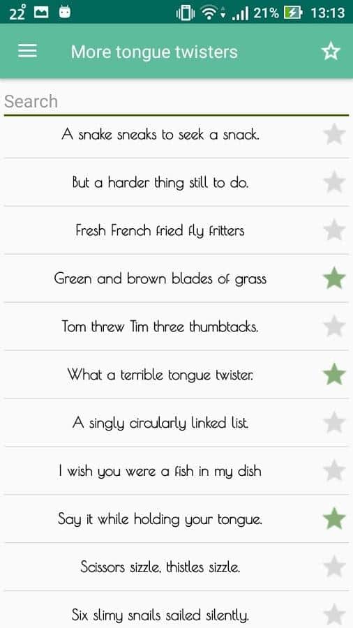 Yorumlar ile Premium English Tongue Twisters with pronunciation üzerinde Android