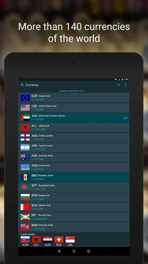 Önceden belirlenmiş bir programa göre, uygulama internet bağlantısı kurarak döviz kurlarını güncel tutacaktır, ancak tam işlevsellik için internete bağlanmak gerekmez — dönüşüm çevrimdışı gerçekleşir.