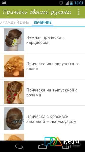 - Uygulama, günlük saç modelleri ve akşam saç modelleri olmak üzere iki kategori içerir.