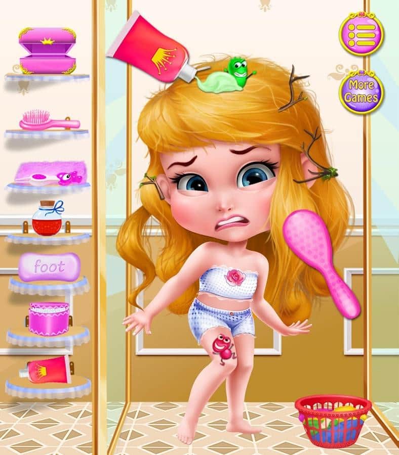 Prenses Makyajı: Kız Oyunları – kızlar için Android'de bir oyun, burada küçük prensesi süsleyecekler. Bu oyunda göreviniz, küçük bir dağınıklığı baloya hazırlamak olacak. Bunun için onu güzellik salonuna götürün ve vücudunu ve saçını çeşitli kirlerden arındırmak için basit işlemler gerçekleştirin. Tüm kirli işler yapıldıktan sonra prensesinizi güzel kıyafetlerle giydirin ve başını taç ve çeşitli süslerle süsleyin. Oyunda sunulan sayısız kıyafeti deneyin ve gerçek bir tasarımcı ve moda tasarımcısı olun. Güzel bir saç modeli ve makyaj yapın ve sevimli prensesi tamamen dönüştürün.