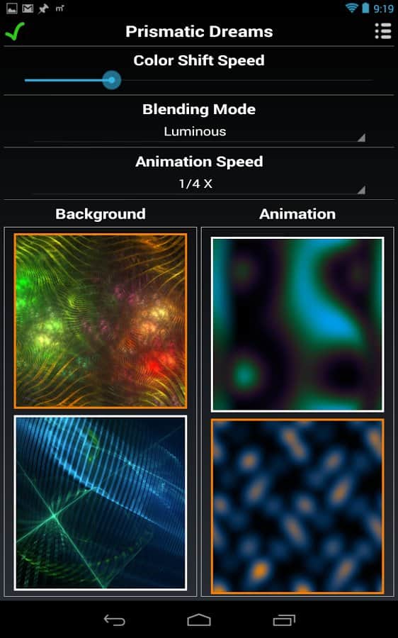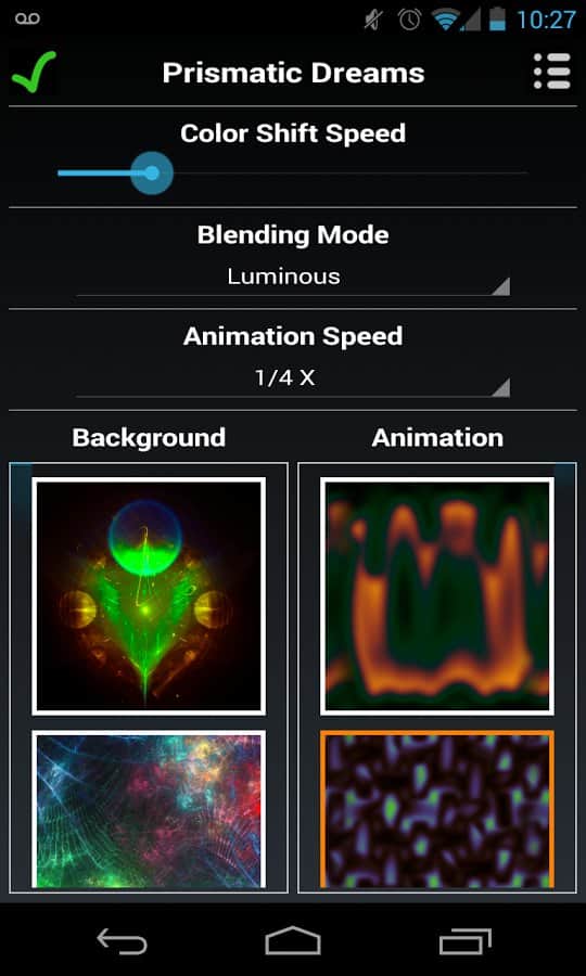 Prizmatik Rüyalar PRO Canlı WP – Android için soyutlamalar şeklinde canlı duvar kağıtları. Her türlü resim, şekil ve çizgilerden oluşan büyük bir koleksiyon, hepsi değişiyor ve akıyor. Bu duvar kağıtları, ruh halinize kolayca uyum sağlar. Ayarlardan seçin: arka plan, ön animasyon, hız sıklığı, parıltı derecesi ve daha fazlası; bunlar sayesinde akıllı telefonunuz oldukça şık ve sıradışı görünecek. İyi kullanımlar.