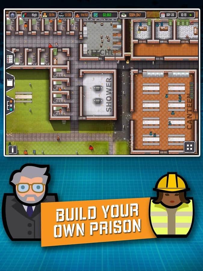 Prison Architect: Mobil - Bu oyun PC kullanıcıları arasında büyük bir popülerlik kazandı ve nihayet akıllı telefonlarımıza ulaştı. Öncelikle, en karmaşık ve güvenli hapishaneyi inşa etmeniz gereken bir inşaat simülatörüdür ve aynı zamanda bu hapishanenin yönetimini de düşünmeniz gerekiyor! Hapishane inşa etmek oldukça zor, sadece tüm odaları düşünmekle kalmayıp, bunların nasıl birbiriyle bağlanacağını, güvenlik görevlilerinin nerede duracağını ve hatta yangın durumları için bir sistem oluşturmayı da düşünmelisiniz.