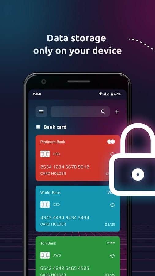 Özel Kart: kart saklama - Eğer birçok kartınız varsa ve bunları farklı yerlerde kullanmak istemiyorsanız, hangi kartların nerede olduğunu unutarak, bu uygulama sayesinde her zaman kaç kartınız olduğunu ve hangi kartların olduğunu bileceksiniz. Tüm kart türlerinizi tek bir yerde toplayın: banka kartları, kredi kartları, banka kartları, hediye kartları veya sadakat kartları. Verilerinizin güvenliği için endişelenmeyin, çünkü uygulama kişisel bilgilerinizi en üst düzeyde korur ve başkalarına ifşa etmez.