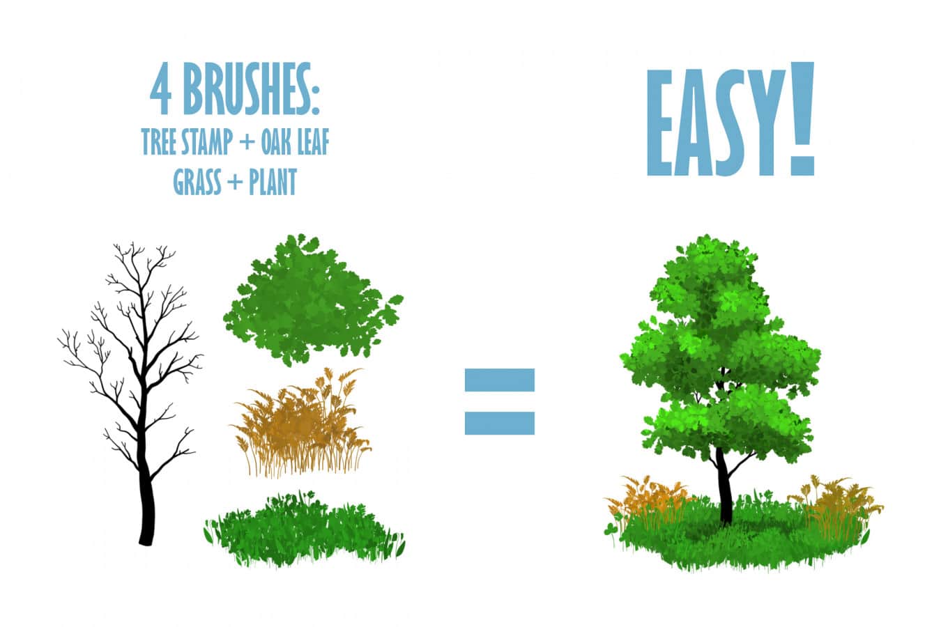 Procreate Fırçaları - Foliage - Bu özel dokularla dolu seti kullanarak tuvalde herhangi bir çalı, ağaç, yaprak ve çimen resmi oluşturun! Gerçekçi bir çalışma gerçekleştirmek için sadece setten belirli bir fırça seçmekle kalmayıp, aynı zamanda yansıtmak istediğiniz şeylerin inandırıcı renk tonlarını da seçmeniz gerekecek. Herhangi bir hatayı ayrıntılı bir şekilde çizin, gerekli yerleri vurgulayın ve sadece doğayı değil, aynı zamanda onu tam bir resim planında birleşik bir şekilde çizmeyi de öğrenin.