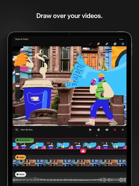 Procreate Dreams, iPad için özel olarak geliştirilmiş bir uygulamadır ve karmaşık 2D animasyonlar, renkli videolar ve ilginç hikayeler oluşturmak için gerekli tüm araçları içerir. Yaratımlarınıza hayat vermek için zaman çizelgesi, Procreate fırçaları, efektler, ses ve daha birçok gelişmiş özelliği kullanın. Zaman çizelgesi üzerinde jest tabanlı navigasyon, oynatma imleci, anahtar kareleri düzenlemenize ve tüm parçaları “delmenize” olanak tanıyan evrensel bir yardımcıdır.