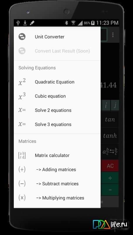 Prof Hesap Makinesi - Birçok farklı işlevi bir araya getiren muhteşem bir bilimsel hesap makinesi, karmaşık problemleri ve formülleri çözmek için tasarlanmıştır. Bu uygulama hemen hemen her türlü görevle başa çıkabilir, ancak ana işlevi matris hesap makinesi ve karmaşık denklemleri çözmektir. Normal bir hesap makinesi olarak kullanmak için pek uygun değildir, ancak eğer bir öğrenciyseniz ve bu konularla ilgiliyseniz, kesinlikle işinize yarayacaktır.