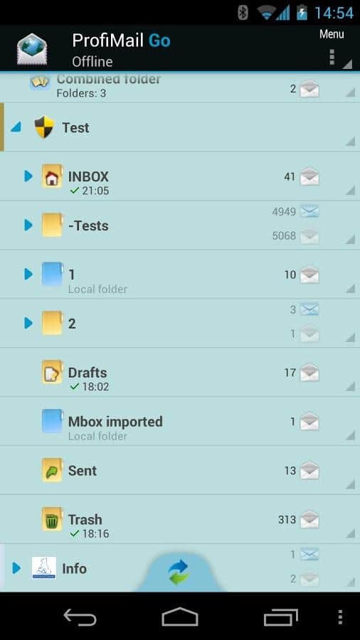 - Birleştirilmiş klasör - bir yerde birden fazla klasörden gelen mesajları görün