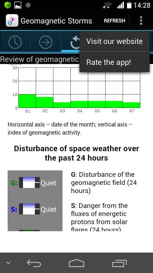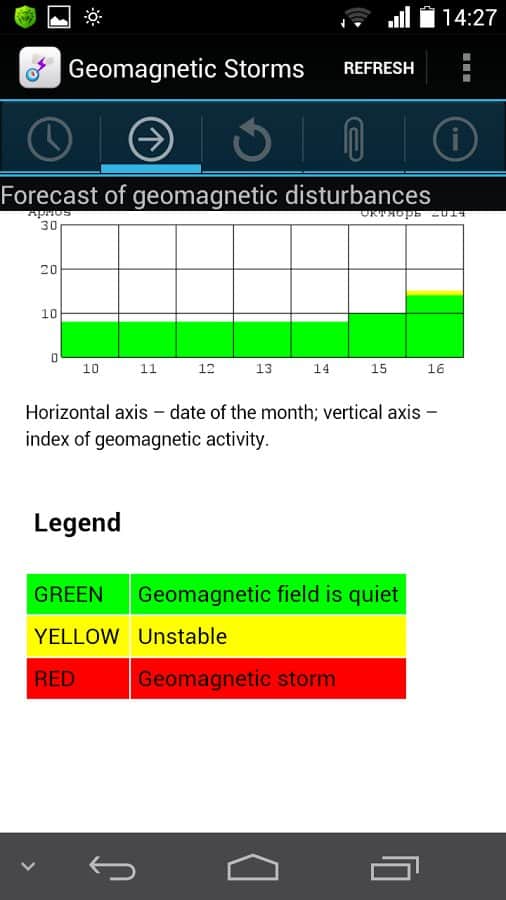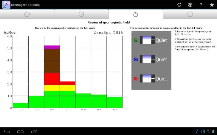 Manyetik fırtınaların tahmini – manyetik fırtınalar hakkında bilgi gösteren çok ihtiyaç duyulan ve güncel bir uygulamadır. Jeomanyetik durumdaki değişikliklere hazırlıklı olun.