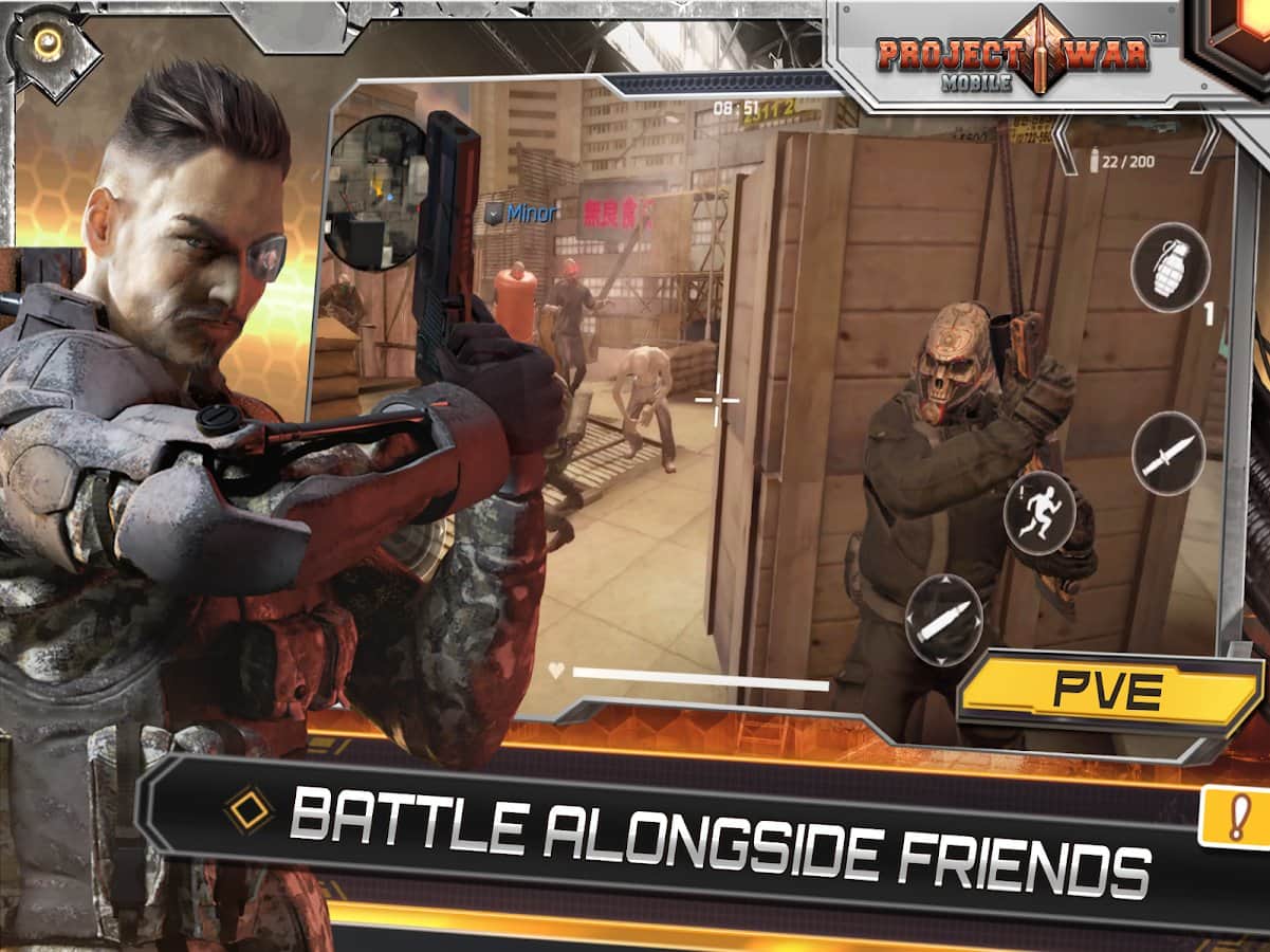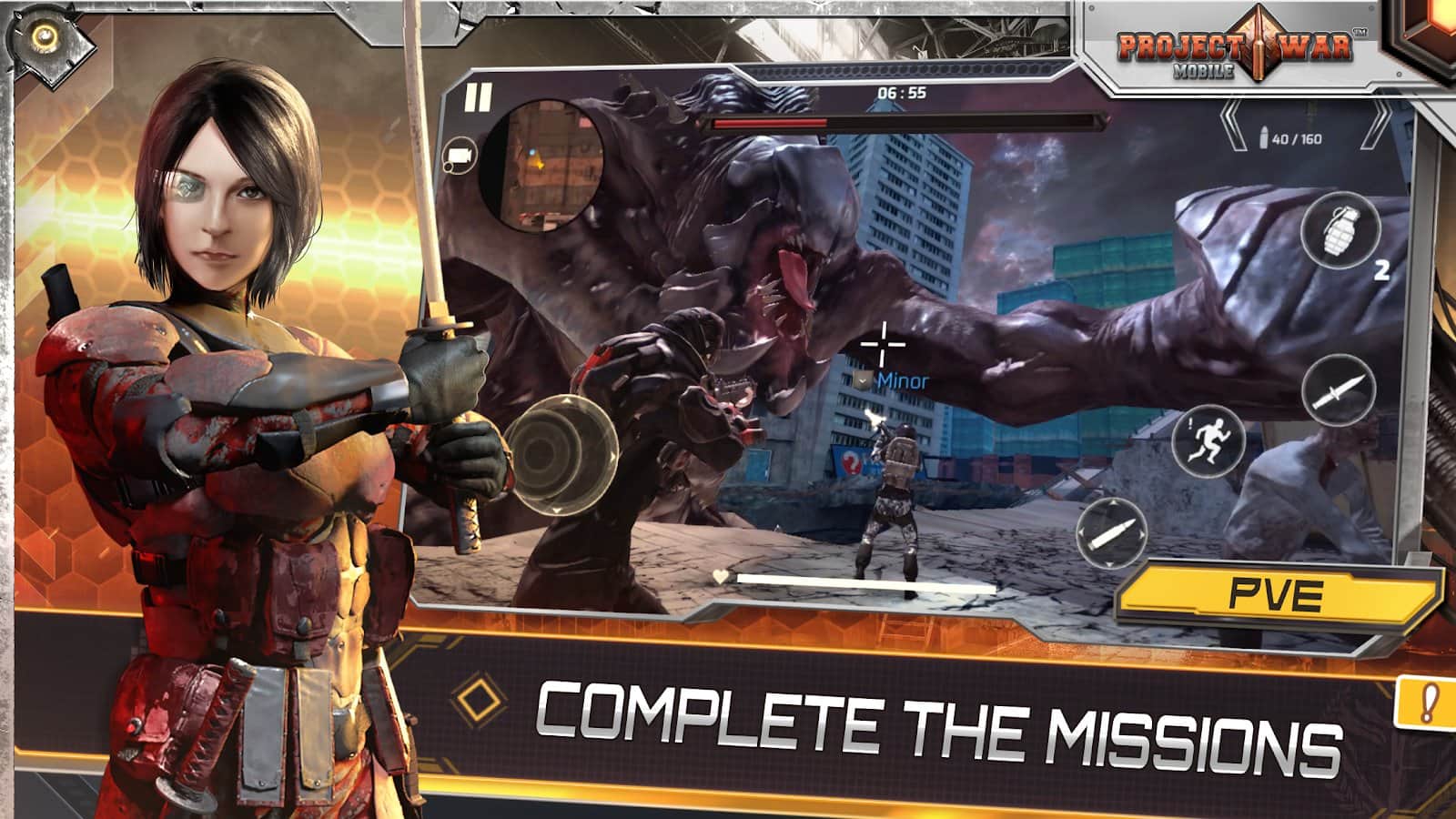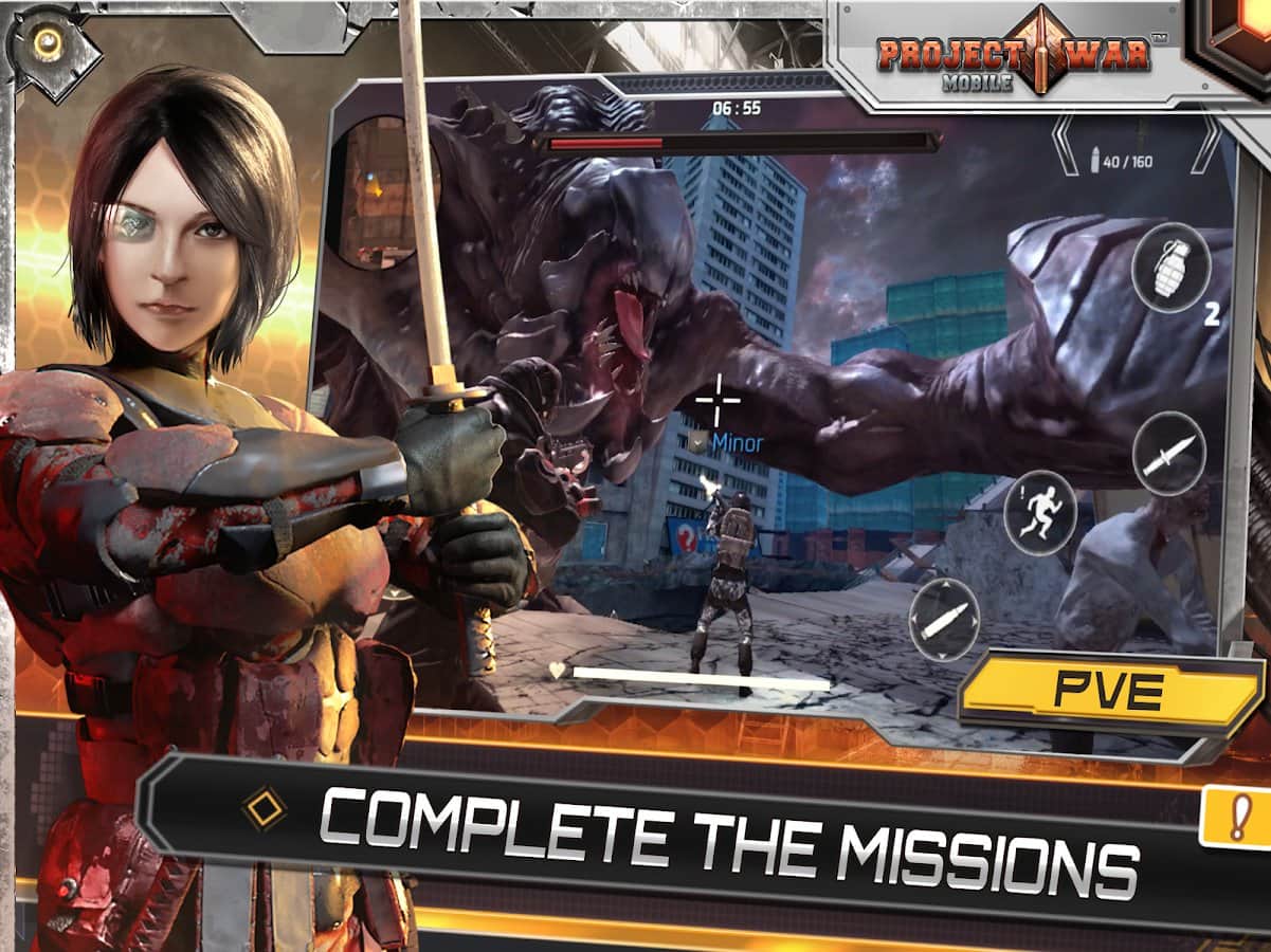 Savaş Projesi Mobil (PWM) - Android için yeni nesil bir aksiyon oyunudur. Hikaye modunda Yedinci Mabed'in askeri olarak ölümsüzlerin sırrını çözerken olayların ve dramaların nasıl geliştiğini gözlemleyeceksiniz. Çok oyunculu modda, dünyanın dört bir yanındaki çevrimiçi oyuncularla savaşarak liderlik sıralarında bir numara olmak için yükselebilirsiniz. Silahlarınızı ve ekipmanınızı geliştirin, karakter seviyenizi yükseltin. Hikaye modunda arkadaşlarınızla birlikte patronları yok edebilirsiniz. Kendi klanınızı oluşturun ve seviyeleri geçerek benzersiz ödüller kazanın.