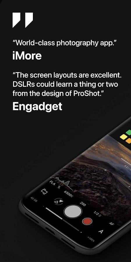ProShot, manuel veya tamamen otomatik modda çekim yapabiliyor. İlk durumda, enstantane, pozlama, flaş, odaklama ve diğer çekim ayarları gibi seçenekler mevcut. RAW formatında ve çeşitli en-boy oranlarında (16:9, 4:3, 1:1) kaydetme imkanı sunulması ilginçtir, bu sayede kalite kaybı olmadan çekim yapılabiliyor. Ayrıca Timelapse gibi birçok ilginç mod bulunuyor. Video çekimi için bit hızını değiştirme ve çekim sırasında ayarları doğrudan değiştirme imkanları da mevcut.