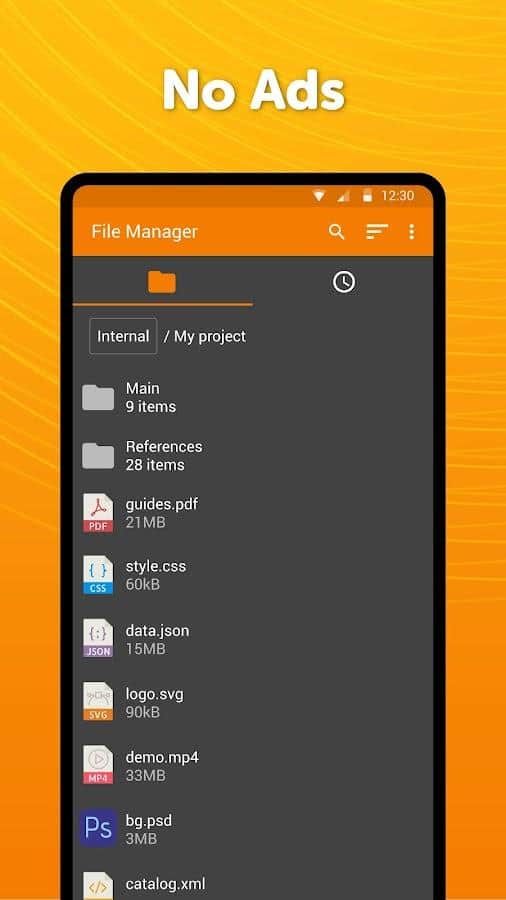 Basit Dosya Yöneticisi Pro - Dosya yöneticisi günümüzde kendi dosyalarınızı yüklemenin, yönetmenin ve saklamanın en rahat, en kolay yollarından biri olarak kabul edilmektedir. Telefonunuzdan verilerinizi tamamen boşaltın ve güvenliği konusunda endişelenmeyin, uygulama bunları güvenli bir şekilde saklayacaktır. Aynı zamanda, belirli bir zamanda gerekli klasörleri kolayca bulabilir ve böylece çok sayıda klasörünüz arasında kaybolmazsınız. Ayrıca, eğer yanlışlıkla önemli bir belgeyi silerseniz, uygulamada onun geri yüklenmesi için bir fonksiyon bulunmaktadır.