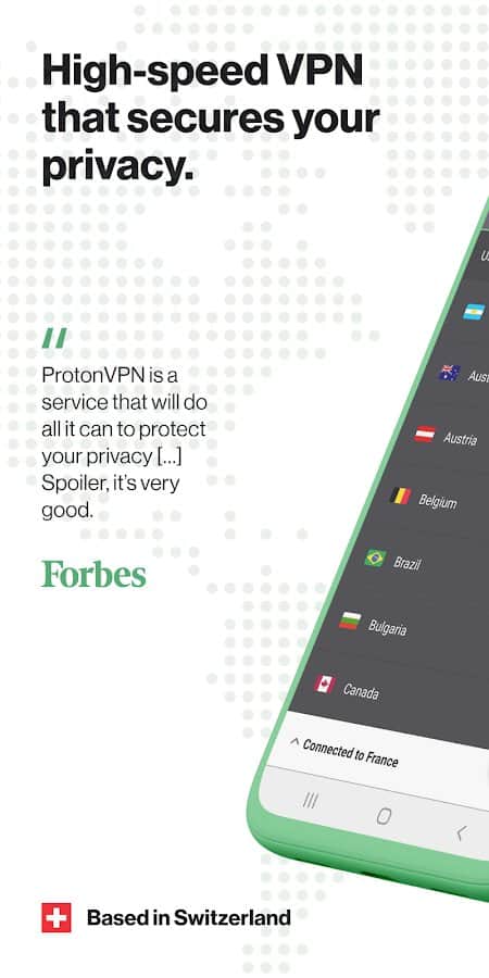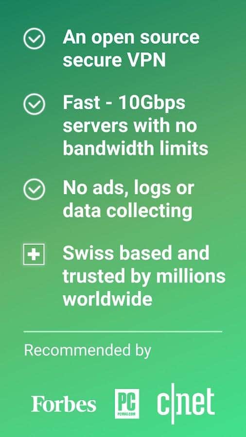 Proton VPN, dünyada sizin gizliliğinizi önemseyen ve güvenli bir şekilde kullanılabilen tek ücretsiz VPN hizmetidir. Proton VPN, CERN'deki bilim insanları tarafından oluşturulmuştur. Tüm verileriniz, AES-256 ve 4096 RSA şifreleme standartlarıyla korunur ve dünyanın en katı gizlilik yasalarının geçerli olduğu İsviçre'deki sunucular üzerinden geçer. Proton VPN, kullanıcı verilerini kaydetmez ve iletmez. Hükümetlerden bir talep gelse bile, hizmetin sunacak bir şeyi olmayacaktır.
