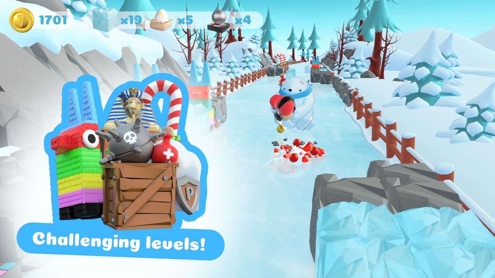 Pukk - eğlenceli bir koşucu, burada sevimli bir karakter olarak kutup ayısından kaçmaya çalışıyorsunuz. Zorluk, koşunun buz yolunda gerçekleşmesidir ve hareket yönünü korumak için çaba göstermeniz gerekecek; bu arada, peşinizdeki kovalamacı patenle hareket ediyor, bu yüzden bir avantajı var. Ayrıca, çeşitli geliştirmeler ve bonuslar saklanan blokları kırmanız gerekiyor. Oyunda harika bir üç boyutlu grafik var ve Noel atmosferi ruh halinizi yükseltecek.