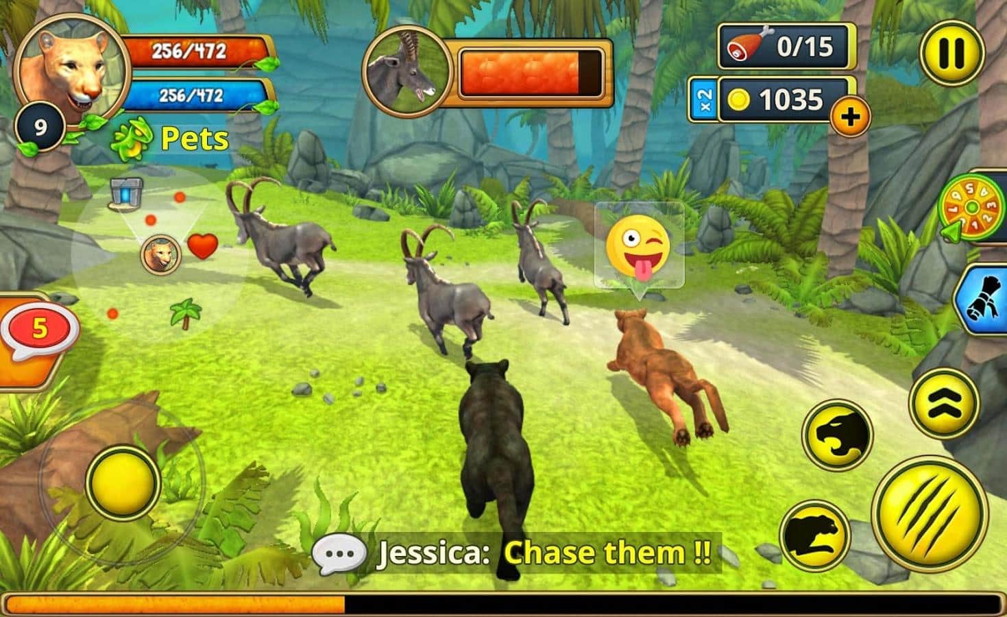 Puma Ailesi Sim Online – Android için ilgi çekici bir simülatör, burada bir puma ailesini yöneteceksiniz. Orman pumasının harika dünyasını keşfedin ve kendinize bir aile bulmak için sayısız ve çeşitli mekanları araştırın. Yavrularınıza bakın, onlarla oynayın ve avlanmayı ve yiyecek bulmayı öğretin. Bölgenizi düşmanlardan koruyun ve kendinize rahat bir ev inşa edin. Ailenizle birlikte avlanın, güçlü patronlara saldırın ve onları yenerek paha biçilmez deneyim ve paralar kazanın. Sağlığınıza dikkat edin ve gücünüzü ve dayanıklılığınızı artırın. Eğlenceli görevleri tamamlayın ve arkadaşlarınızla oynayın.