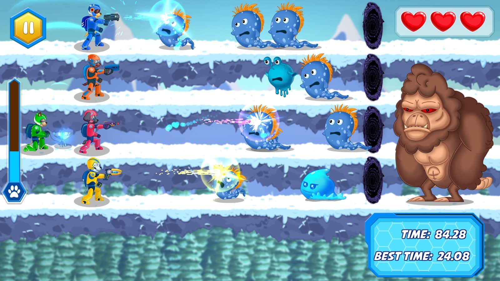 Köpek Kurtarma Patrol: Macera Oyunu – cesur köpeklerden oluşan bir ekibi yönetin ve gezegeni korkunç canavarlardan kurtarın. Kahramanlarınızı bu oyunun birçok seviyesinden geçirerek düşmanlarla savaşın, sizi bekleyenleri alt edin. Karanlık madde dünyanıza sızdı ve yolundaki her şeyi yok etme tehdidi oluşturuyor, herkesi canavarlara dönüştürüyor. Köpeklerinizi kahraman kostümleriyle giydirin ve onları lazer tüfekleriyle donatın, düşmanı yenmek için harekete geçin. Köpekleri ileriye götürün ve canavarlara karşı savaşta onların benzersiz yeteneklerini ve güçlerini kullanın. Yeni arcade oyunu, çocuğunuza birçok heyecan verici savaş ve canlı deneyimler sunacak, ayrıca basit ve anlaşılır kontrolleriyle de memnun edecek.