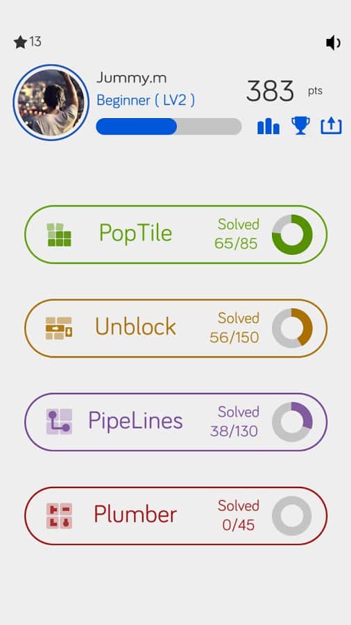 Bulmaca Kralı, dört mini oyundan oluşan, Android için eğlenceli bir bulmaca oyunudur. Bu oyunda, seçtiğiniz oyuna bağlı olarak çeşitli görevleri yerine getireceksiniz: aynı renkteki kareleri birleştirip sahadan kaldırın, farklı renkli noktaları birbiriyle birleştirirken çizgileri kesmemeye dikkat edin, sahada bulunan çeşitli parçaları döndürerek bir boru hattı oluşturun ve ayrıca küpü çıkışa yönlendirin, onu diğer bloklarla yer değiştirerek. Bu oyunu oynayın ve hafızanızı, zekanızı ve mantığınızı geliştirirken bazen zorlayıcı bulmacaları çözün. Oyun, minimalist grafikler, basit ve anlaşılır kontroller ve arkadaşlarınızla rekabet etme imkanı ile sizi memnun edecek.