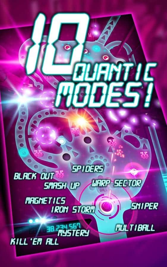 Quantic Pinball - Android cihazlarınız için kaliteli bir şekilde yapılmış pinbolun harika bir örneği. Oyun, parlak neon-fütüristik bir tarzda, hafif bir retro dokunuşla tasarlanmıştır. Oyunda, mükemmel top hareket fiziği, çeşitli varyasyonlar ve oyun modları sizi bekliyor. Her şey hareket ediyor, yanıp sönüyor ve parlıyor, dinamik anlar oyunda gerçekten aşırı derecede fazladır. Bu oyun, boş zamanını ateşle ve coşkuyla geçirmek isteyenler için tasarlandı.