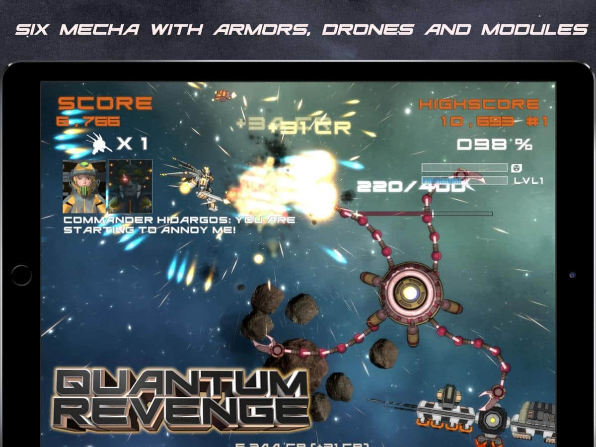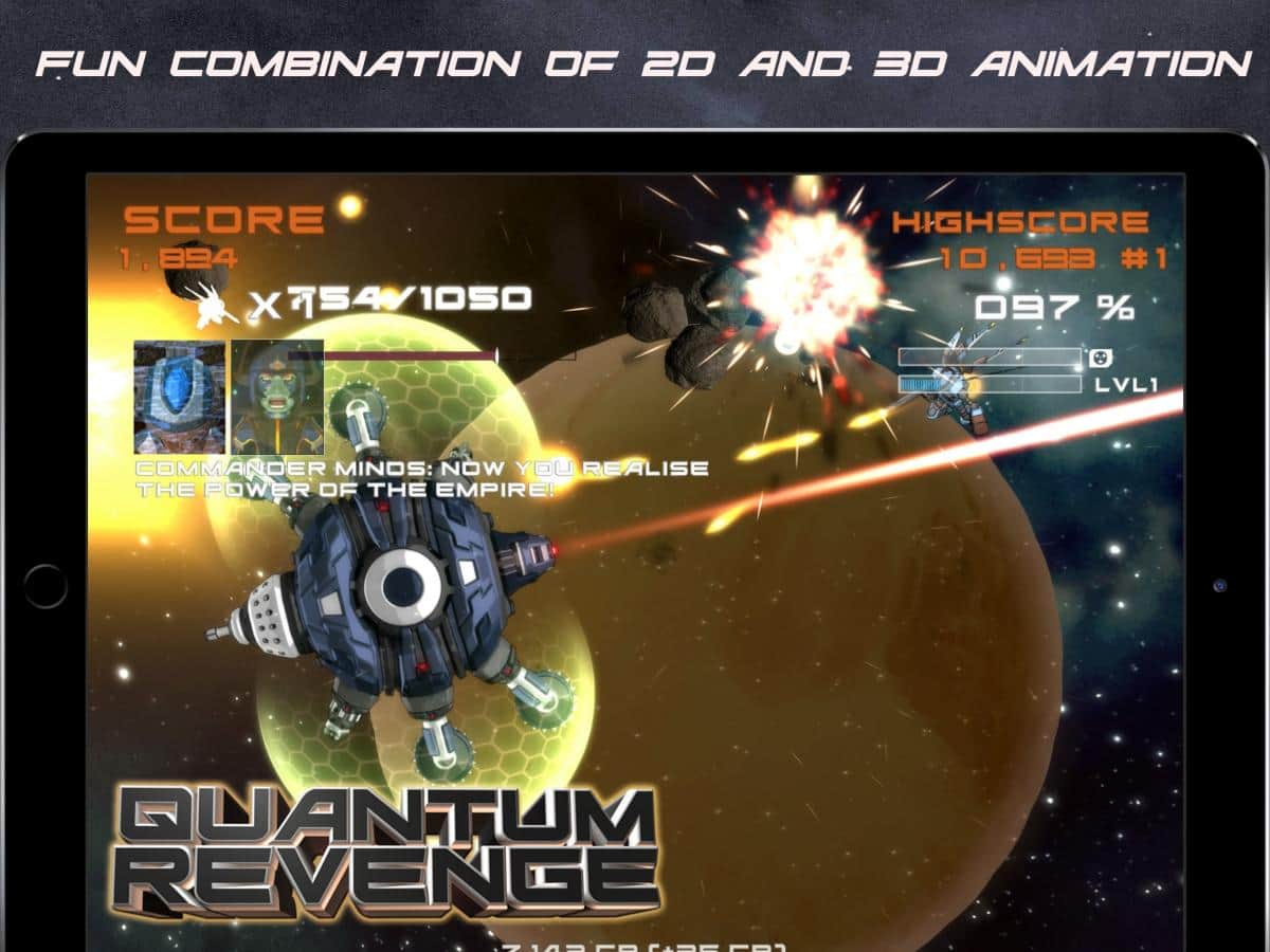Kuantum İntikam – IOS için fantastik bir aksiyon oyunu, burada galakside seyahat edecek ve uzaylılarla savaşacaksınız. Bu oyun sizi yakın bir geleceğe götürecek, burada insanlar uzaydaki uzak gezegenleri kolonileştirmeye ve değerli kaynaklar ile madenler çıkarmaya başladı. Bir süre sonra, gezegenleri uzayda mekanize düşmanlar ve güçlü bosslar tarafından saldırıya uğramaya başladı. İnsanların, düşmanlara karşı koymak için silahlarını alıp savaşmaktan başka seçeneği kalmadı. Tüm verilen görevleri yerine getirin ve gemilerinizi geliştirin, oyun ilerledikçe onlara ek zırh, kalkan, çeşitli modüller ve dronlar ekleyin. Güçlü bosslarla savaşın ve harika grafiklerin ve müzikal altyapının tadını çıkarın.