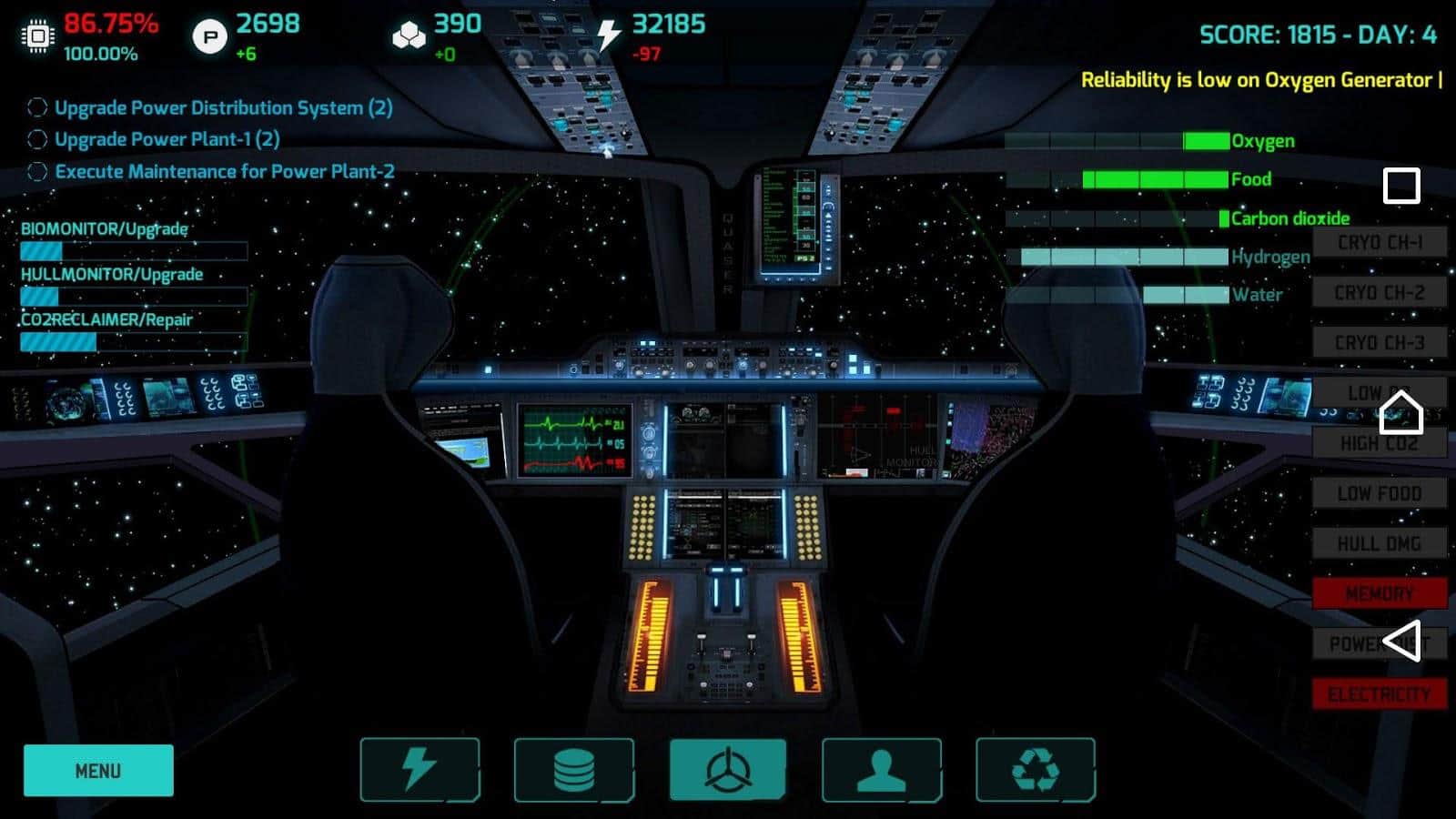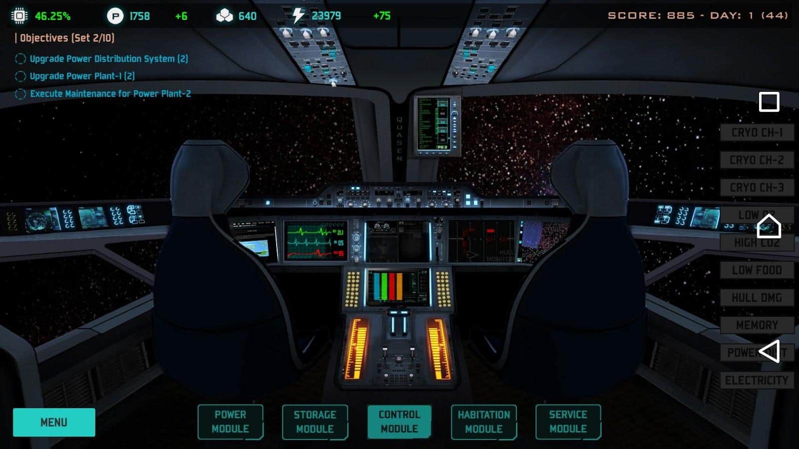 Quaser One - Bu oyunda bir uzay gemisini yöneteceksiniz. Uzak bir gelecekte insanlık, uzayın geniş alanlarını fethetme yeteneğine sahip olacak. Quaser adındaki geminiz kaza geçirdi ve en yakın gezegene yavaşça inmeye başlıyor. Göreviniz gemiyi ve mürettebatı kurtarmak, ancak bunun için geminin tüm kaynaklarını doğru bir şekilde dağıtmanız gerekiyor.